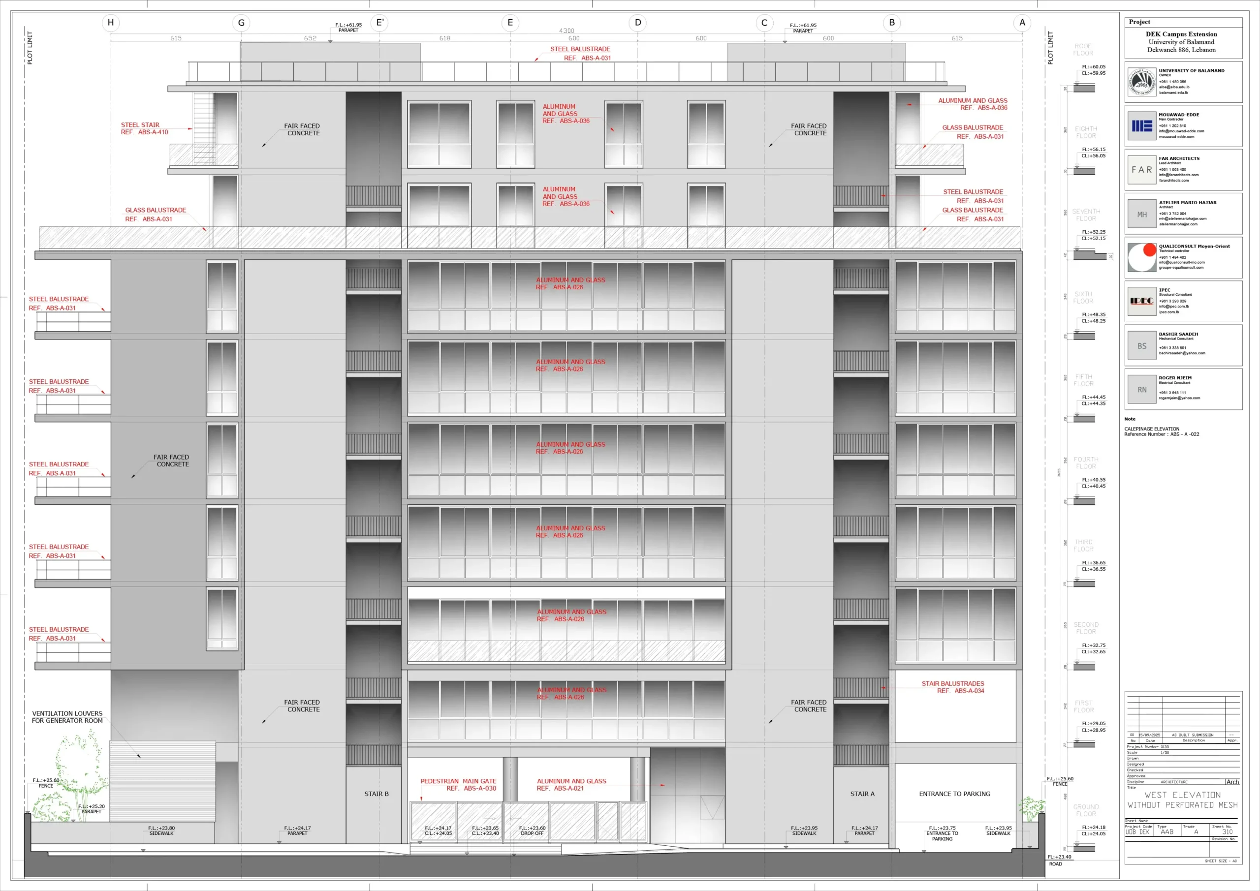Shop drawings and bar bending details for the ALBA Extension Campus, Dekwaneh — completed in September 2025.